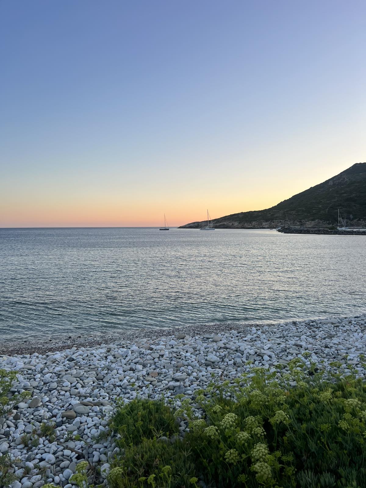 Close to the main village, you’ll find two small coves: Agia Triada Beach and Vathi Portelo. Both are rocky with pebbled shores — great for snorkeling and enjoying peaceful evening swims right near the settlement.